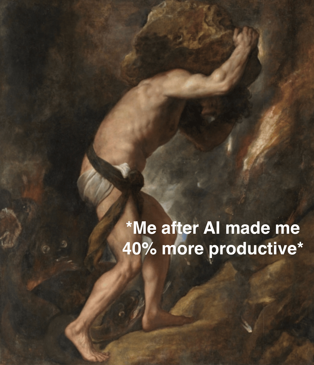 Firstly, (apart from the small matter of wondering if you're about to be replaced by AI entirely), there’s something we can all agree on: AI does make individual tasks faster. It can increase productivity.